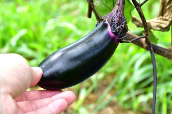 スタッフへの感謝の気持ちを込めて、農園で収穫した新鮮な野菜を持ち帰れる嬉しい特典があります!その日に採れたばかりのみずみずしいナスを、ご家族と一緒に味わってください。