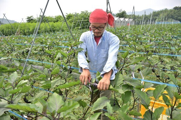 主にお任せするのは、ナスの収穫や出荷用のコンテナに移す作業です。農機具を使ったり、重たい物を持ったりといった作業はほとんどありませんので、未経験から始めてみたいという方も安心して取り組めますよ◎