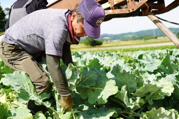 当社は、多角的な事業で社会に貢献する「エア・ウォーターグループ」の一員です。北海道千歳市の広大な自社圃場と契約農家様の協力のもと、トマトやケール、さつまいもといった多品目の野菜を大規模に生産。一部では有機栽培や無農薬栽培にも取り組むなど、食の安心・安全を追求しています。