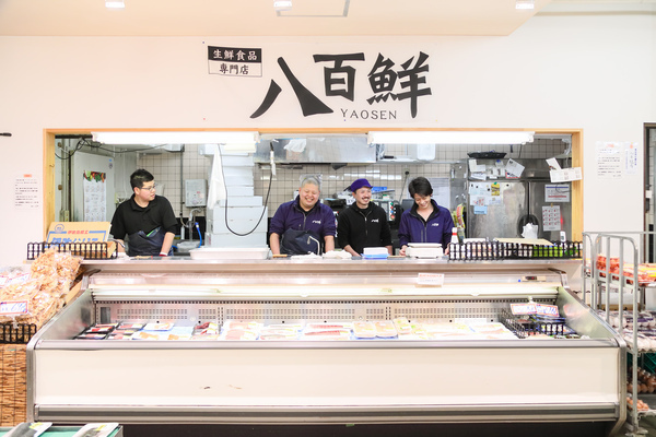 平均年齢32歳の活気ある職場です。新人・先輩関係なく「どうしたらもっと面白くなる?」なんて議論が日常茶飯事。一人で悩むより、チームみんなで頭をひねるのが八百鮮のスタイルです。ほとんどの先輩が未経験から始めているので「見て覚えろ」なんて言いません。あなたが納得するまで、とことん付き合ってくれる仲間がいます。