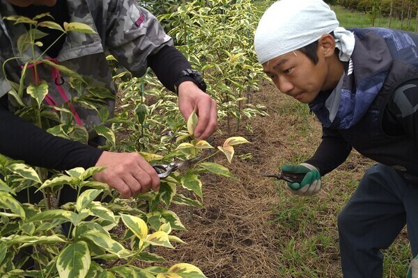 お任せするのは植木の栽培管理です。まずは剪定や草刈りといった簡単な作業から始め、あなたのペースに合わせて丁寧に教えます。