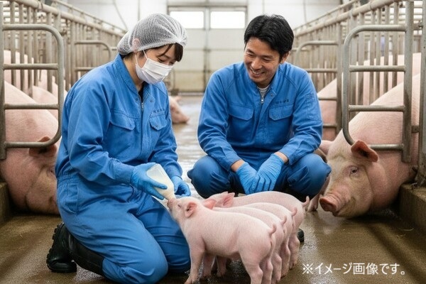 あなたにお任せするのは、年間29,000頭出荷される豚たちの、まさに「始まり」を担う『繁殖部門』の仕事です。母豚の体調を日々見守りながら交配の準備をしたり、命がけの出産に立ち会ったり、生まれたばかりで免疫力の弱い子豚が元気に育つよう、愛情を込めてお世話をしたり。毎日が命の神秘と尊さに触れる瞬間の連続です。