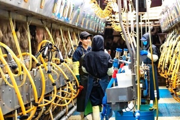 動物が好きで入社。酪農未経験でしたが、先輩の分かりやすい指導で安心して業務を習得できました。入社1年で子牛担当に異動、現在はパーラーで搾乳を行っています。当社の魅力の1つは、こうした様々な業務に携われることです。不安もOJTで克服し、幅広いスキルを身につけ、成長を実感しています。