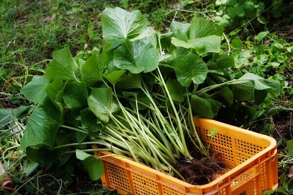 「畑わさび」はあまり聞きなれないかもしれませんが、皆さんがイメージする清流で育てる「水わさび」と同じもので、育てる環境によって呼び名を変えています。水わさびは主に根を使うのに対し、畑わさびは主に茎を出荷しチューブわさびやドレッシングなどの加工用原料として利用されています。