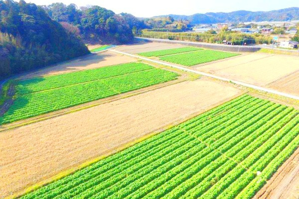 御子神農園(みこがみのうえん)は、温暖な千葉県南房総市において食用菜ばなの生産を行っています。栽培面積35haで生産量は250tです。