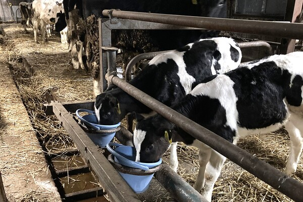 つなぎ牛舎を改装した哺育・育成舎で、哺乳〜繁殖可能な月齢まで飼養管理しています。また、牛たちに名前をつけ、積極的にスキンシップをとるなど一頭一頭愛情込めて育てています。こういったこだわりによっておいしい牛乳を消費者に届けています。