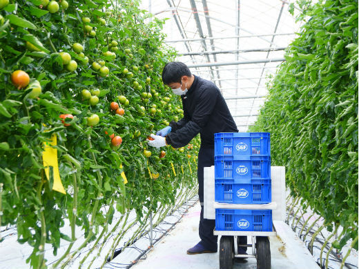農事組合法人協和園芸開発センターでは、大玉で糖度9度以上のスーパーフルーツトマト(てるて姫)の栽培をしています。フルーツトマトは通常小玉ですが、当農場では20年前から大玉のフルーツトマトの開発に取り組んできました。当時は、「無謀な試みだ」「絶対に無理だ」という声が多い中、「徹底的にやり抜く」という我々のモットーのもと、品種および栽培方法を独自開発し、今は安定供給が可能となりました。この大玉で糖度9度以上というスーパーフルーツトマトは、現在日本国内でも当農場でしか栽培が出来ないものです。