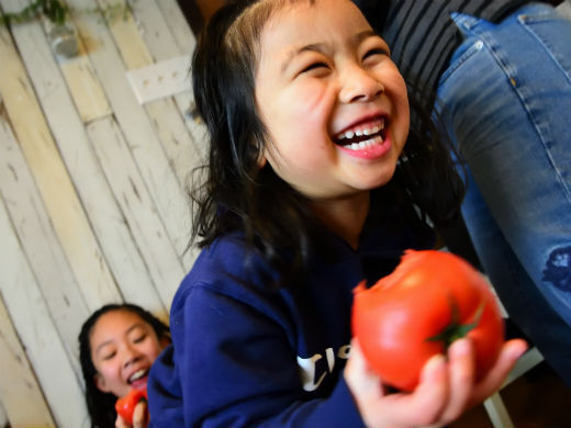 〔写真はスタッフのご家族が当社のトマトを食べている様子です!〕