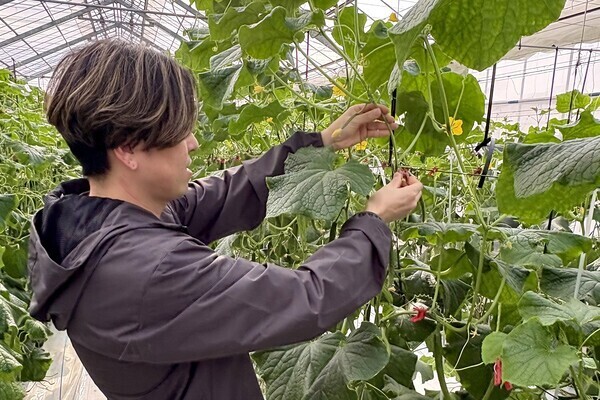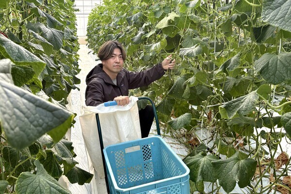 主な仕事は、ハウス内でのきゅうりの収穫や、形を整える管理、出荷用の箱詰めです。つる降ろし栽培で、腰に負担の少ない高さで作業できるのがポイント!重労働ではなく、1本ずつ丁寧に、コツコツと進める作業がメインです。