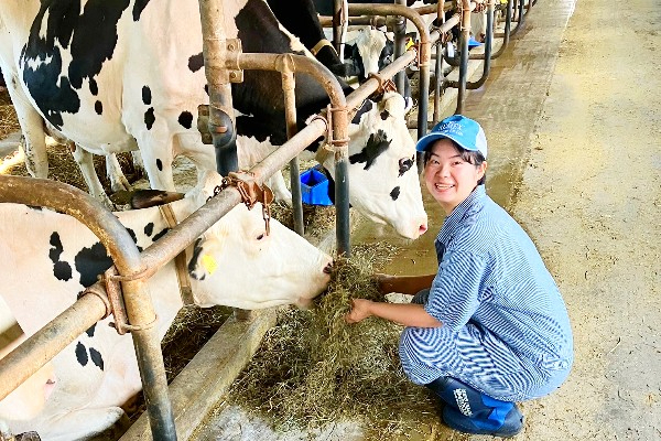 朝5時から9時までと、夕方15時から19時までは搾乳、牛舎掃除、餌やりなどの仕事をします。9時から14時までは休憩時間になるため、お昼はゆっくり過ごせます。6月からはじまる牧草収穫では作業機やトラックに乗って作業してもらうこともあります。