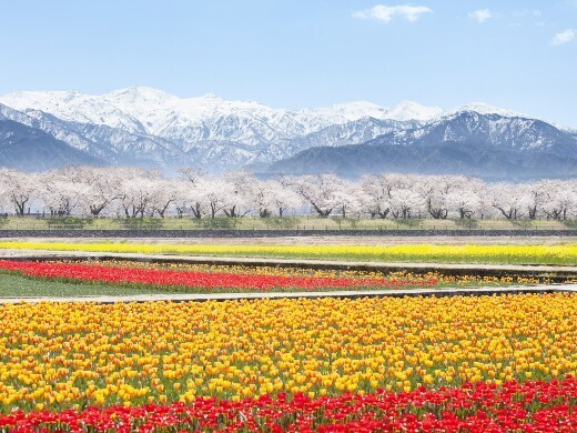 残雪の朝日岳を背景に桜並木、菜の花、チューリップの4種類の美しい色相を観ることができる、「あさひ舟川 春の四重奏」と呼ばれるスポットがあります。菜の花もチューリップも農業が織りなす技です。また春だけでなく、夏秋はホタル、田んぼアート、ヒガンバナの真っ赤な絨毯など一年を通して感動に出会える場所です!