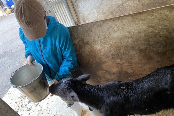 ここでは年間200頭もの小さな命が生まれます。お願いしたいのは、生まれてから出荷されるまでの約60日間、ミルクをあげたり体調を見守ったりする大切な役目。ただの作業ではなく、本当の我が子のように愛情を注いでほしいです。「元気に育ってね」と声をかけながらお世話をする毎日は、他では味わえない愛おしさに溢れています。