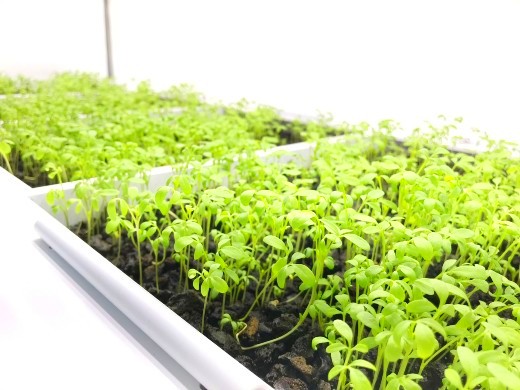 葉ワサビの栽培には澄んだ流水が大量に必要ですが、植物工場内で栽培することにより、気温・水温・水質・水量といった条件を細かく管理できるため、安定した品質で一定の収量を生産できます。