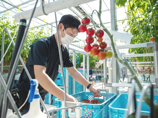 トマトの生産に関わる業務はもちろん、環境制御、肥料コントロール、作業計画立案などの生産管理業務や病害虫防除計画と実施業務、パートさんへの作業指示・進捗管理・労務管理などのマネジメント業務、その他出荷作業の進捗管理、トマトの品質管理、営業や生産現場とのコミュニケーション、請求書作成などをお任せ致します。