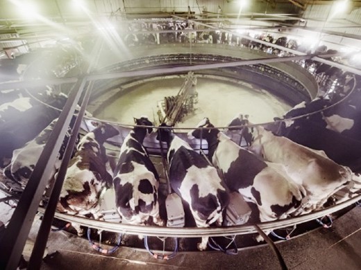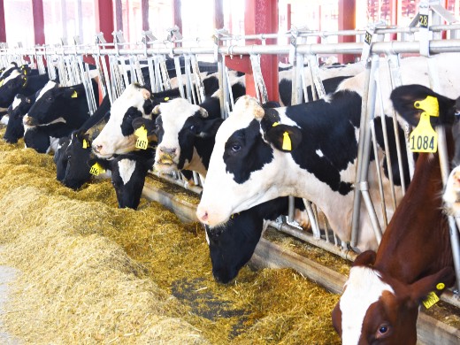 現在、北海道内で酪農牧場は2拠点で、グループの年間出荷乳量は5万トンを突破。第2拠点の牧場では国内最大級の80ポイントの搾乳施設が稼働中です。