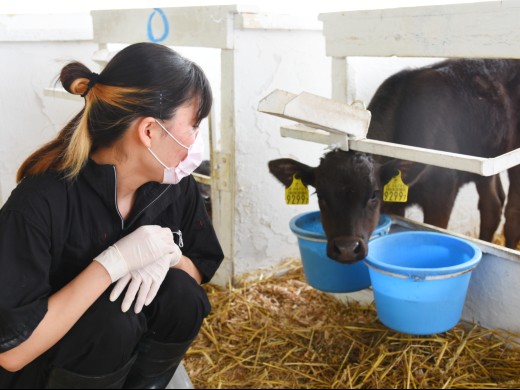 動物専門学校出身、入社2年のハッチ担当の社員。今では子牛の体調変化を感じられるように。「牛を知り、牛が発しているSOSや気持ちを気づいてあげられる飼育員に成長していくのが目標です」