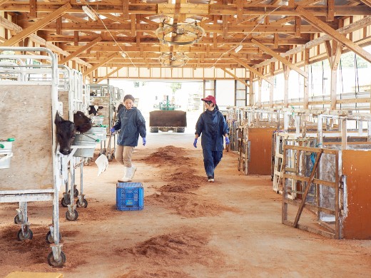 この仕事のやりがいは、ハッチからあがってきた子達がミルクをしっかり飲み、餌も少しずつ食い込んでいく中で体が丈夫な体つきに育っていくこと。うまくいかないこともあり、牛飼いの難しさを痛感しますが、皆で協力して少しずつ良い子牛になっていくこともやりがいを感じるところです。