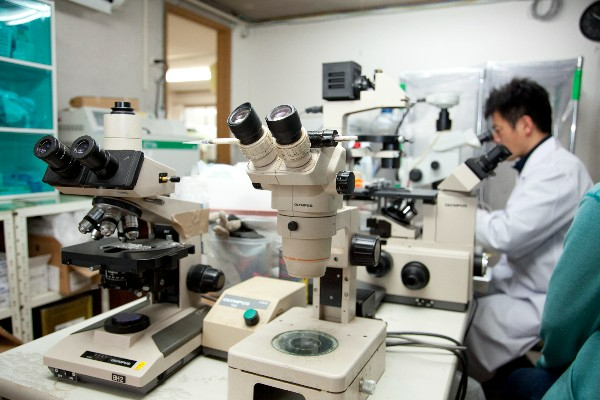 家畜診療所としては珍しく、自社農場を備えています。これにより臨床試験や研究開発に取り組めるだけでなく、農家さんと同じ目線で診療を行うことが出来ます。黒毛和牛の子牛生産も行っているため、牛の世話も重要な業務のひとつです。最先端の技術を取り入れることで、高齢や子宮疾患などにより採胚が困難になった雌牛からも卵子を採取し、受精卵の作出を可能にしています。