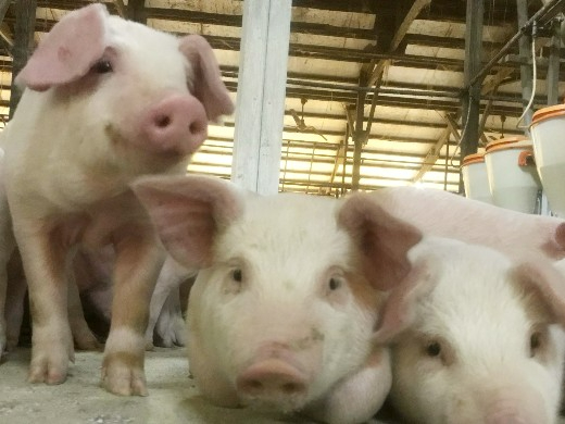 豚たちは子ブタの時から愛情いっぱいに育てられているので、元気いっぱいです。衛生管理もしっかりしているので、ストレスなく生活しています。