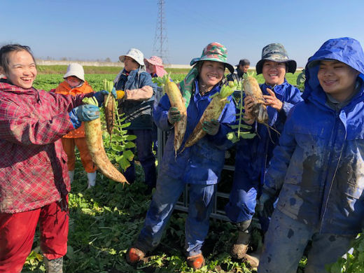 輝楽里(きらり)は、2006年に7軒の農家が集合して創立されました。農業未経験者も積極的に社員として迎えているほか、外国人技能実習生やタイ・マレーシアの大学生のインターンシップ提携を行うなど国際色豊かな会社です。