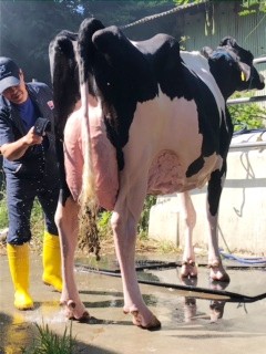 共進会に出品しています!共進会は牛の美しさや機能性を競うコンテストです。年に数回、酪農家同士の情報交換や交流にもなる貴重なイベントです。上位入賞を目指して頑張っています!