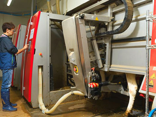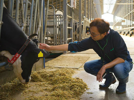 8台の搾乳ロボットで搾乳するため人の手による搾乳作業がなく、発情兆候や疾病牛のピックアップなど牛の管理が主な仕事です。酪農業でよくある勤務時間が朝・夕に集中するということがなく、日中の勤務が多くなります。