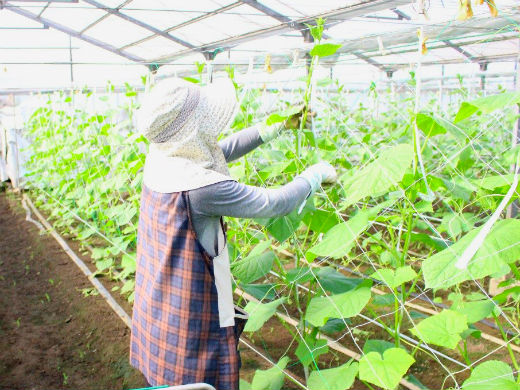 現在、キュウリの収穫・出荷作業や管理作業を行って頂くパートさんを新たに募集しています。