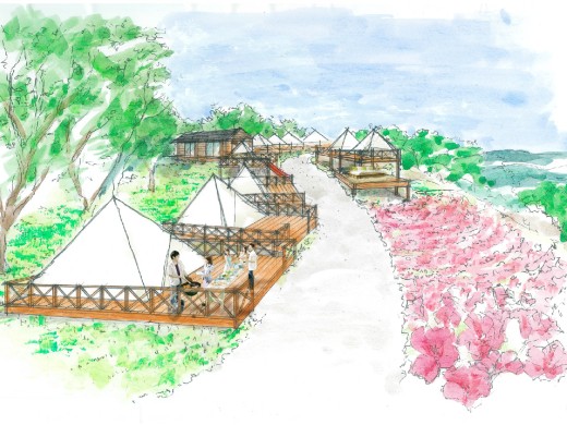 まきばエリア「花の大斜面・東」付近に位置していたコテージエリアをリニューアルし、グランピングエリアをオープンすることになりました。