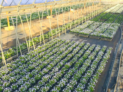 主にホームセンターへ出荷する花や野菜を生産しており、当社でしか作っていない品種も40種近くあります。「いかにお客様にご満足いただける商品を作るか」を重点に置き、ホームセンターの方との協議も欠かしません。
