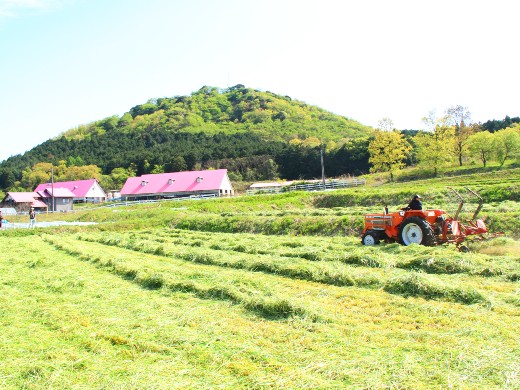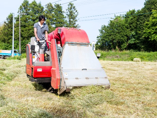 自家飼料の生産は、「どうやって作られたか明確な、目に見える安心安全を作り出したい」という牧場長の熱い想いで始まりました。さらに牧草地を広げるべく耕作放棄地の開墾作業も行っています。実は自家飼料の取り組みには「耕作放棄地を減らしたい」という目的もあります。