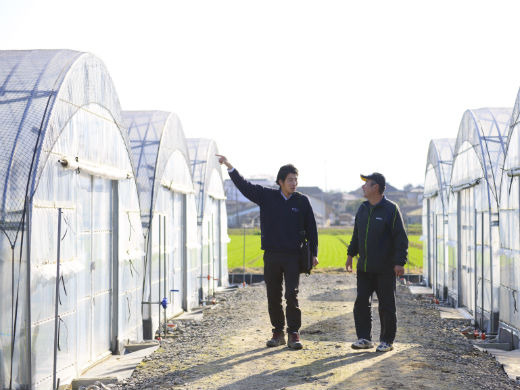 当社は、農業を始められる方や、ハウス栽培へ切り替える方などに、パイプハウスの提案販売を行っています。一般的に広く採用されている安価な物から、オリジナル構造の物まで、様々な形式のハウスを提案しています。そして、ハウスの中で使用する様々な商品もワンストップで販売できることが強みです。"