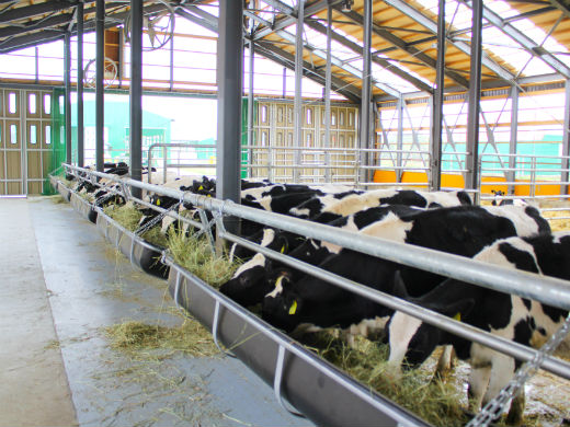 7.8haもの広大な土地に、哺育舎、育成舎2棟、成牛舎(パーラー搾乳用)、搾乳舎(ミルキングパーラー)、搾乳ロボット舎が建てられ、牛の月齢や搾乳時期などによって牛舎を分けて管理しています。
