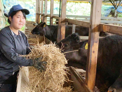 四日市市牧場で子牛を生産し、その後は同じ三重県内の牧場で松坂牛を、滋賀県内の牧場で近江牛を一貫経営で生産しています。