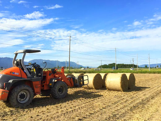 周辺の稲作農家と耕畜連携し、「粗飼料」となる稲わらや麦わらを当社で年間200ha回収する代わりに、独自に精製した堆肥をそこへ散布する、地域密着型の資源循環農業を行っています。