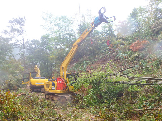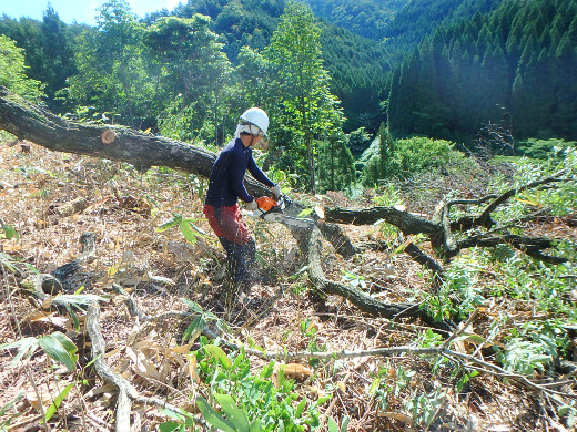 林業は3Kと言われている通り、きつく、重労働です。伐採~搬出に至るまで、すべての作業に危険が伴います。しかし、伐倒が思い通りにできたとき、作業道の作設がうまくできたときなど、自分の技術が向上したときは、楽しさとやりがいを感じます。"