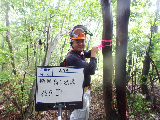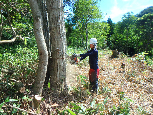 現在の山林班は平均年齢32歳とフレッシュなメンバーでやっています。お互いに意見を出し合いながら、仕事の方向性を決めています。仕事は気候に左右されるので体力と気力が必要ですが、現場の仕事が終わると達成感を味わうことができます!この達成感をみなさんも味わってみませんか。私たちと一緒に汗を流しましょう。"