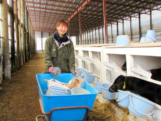 入社後、まずは牛舎の掃除の仕方や牛の触り方からお教えします。仔牛にミルクや水を飲ませる仕事も覚えていきます。2~3ヶ月後には担当牛舎へ配属。哺育部門、肥育部門、酪農部門とさまざまな仕事があるので、必ず自分に合った部門が見つかると思います。外部講師による勉強会を年3~4回開くなど、研修制度にも力を入れています。