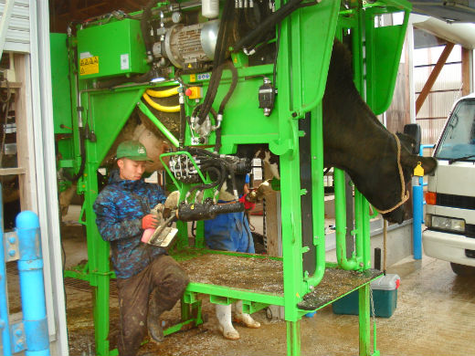 現在は油圧式の削蹄台を導入し、より安全に削蹄を実施しています。