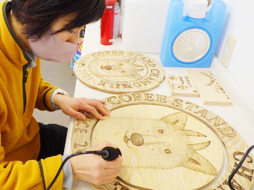 ※写真は活動拠点の施設で使用するドリンクスタンドの看板を作成している様子です。