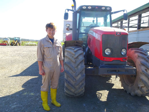 会社設立時から入社しました。大型、けん引、作業免許の3種類を会社の半額補助制度を使い取得しました。主な仕事は、トラクターでのエサやり、牛舎のベッド掃除、搾乳作業です。トラクターの運転や、牛との触れ合いが楽しいです。