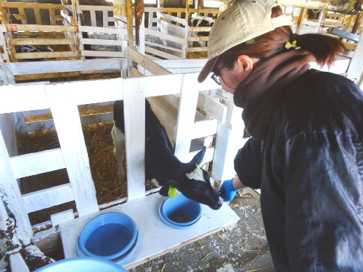 当社には哺育部門もあり、現在女性社員3名が活躍しています。産まれてすぐの状態から一頭一頭愛情をかけて飼育しており、仔牛の状態を常に確認しながら作業を行っています。