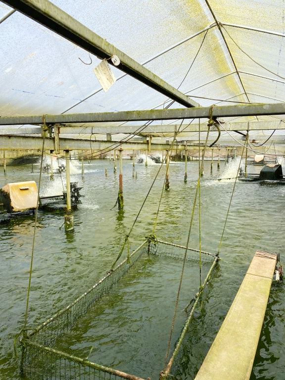 夏場のハウスの中は非常に暑く、汗を流しながら作業をしています。池に放流したわずか0.2gの稚魚が1,000倍~1,200倍の大きさに成長して出荷される時は自分の流した汗の成果に感動できるはずです。