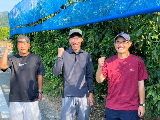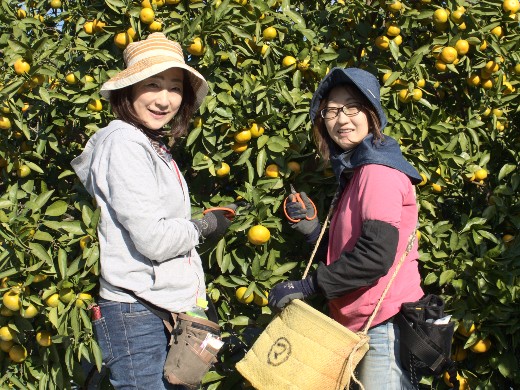 現在農園で活躍しているのは、20代から40代の仲の良いスタッフたち。なだらかな丘陵地にあるミカン畑で四季を感じながら、豊かな実りに向かって心を一つに励んでいます。農業に携わる仕事に取り組みたいという熱意と意欲のある人材なら、年齢、性別、学歴を問わず大歓迎です。