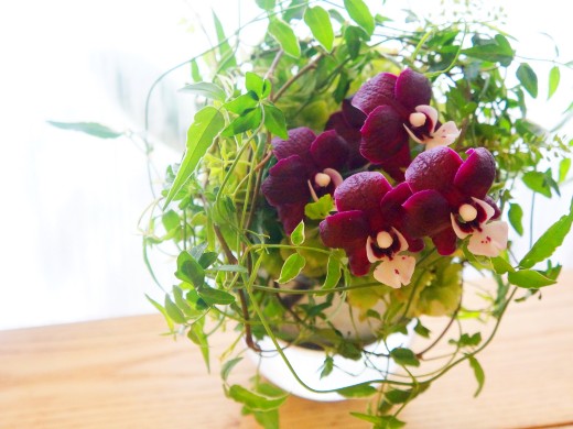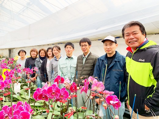 私たちは、冠婚葬祭に欠かせない「胡蝶蘭」の切り花生産と、「アイビー」「スマイラックス」をはじめとする葉物の生産を行う会社です。