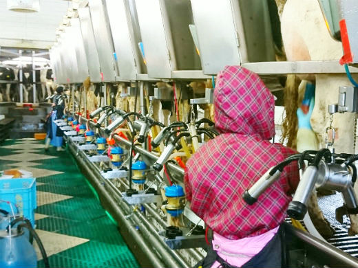搾乳・えさやり・哺乳など乳牛の飼育に関する業務が主な仕事です。力仕事は機械に任せていますので、重労働はあまりありません。1人1人の裁量が大きいため、成長したいという方にもぴったりの職場です。