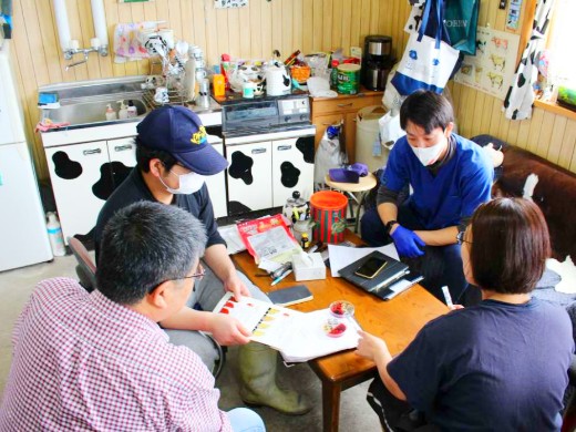 酪農経営をサポートするコンサルティング会社の方も交えたミーテイングも月に一回開催。参加者全員が疑問点などをどんどん出していける雰囲気があります。"
