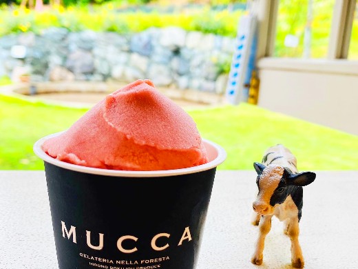 2013年にオープンした「森のジェラテリアMUCCA(ムッカ)」。生乳を出荷するだけではなく、自分たちで商品を作り、付加価値を高めたいという想いから始まりました。