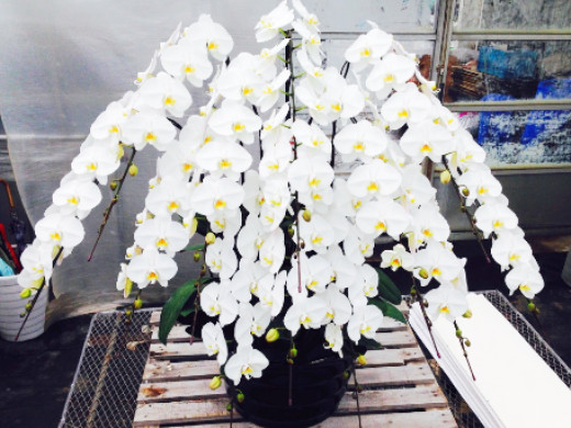 手間暇かけて育てた当社の胡蝶蘭は、どこから見ても美しく、華麗に咲き誇ります。当社は生育環境だけでなく出荷時にも細かな対応を行い、皆さまの元へお届けしています。"